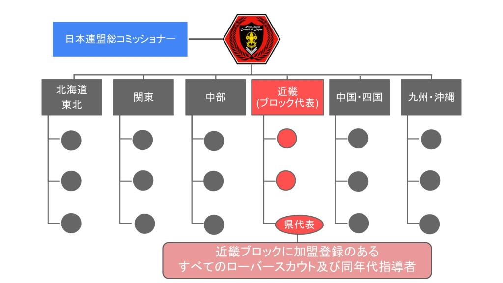 RCJ近畿ブロック会議はボーイスカウト近畿ブロックの各県連盟に加盟登録のある18歳から26歳頃までの青年スカウト、または同年代指導者によって構成されており、各府県の代表1名ずつの計6名、その中でブロック代表1名が選出され、組織されています。