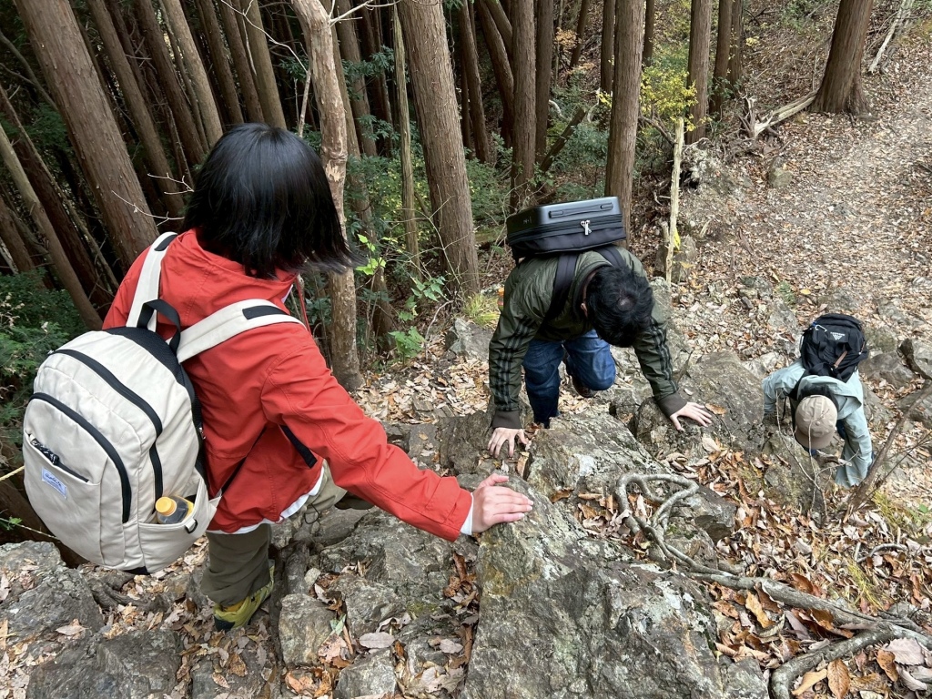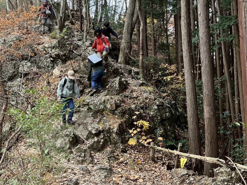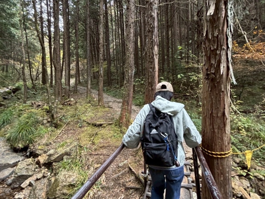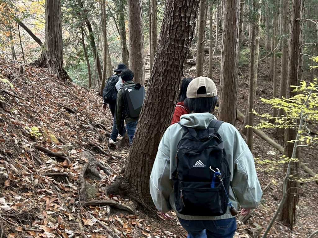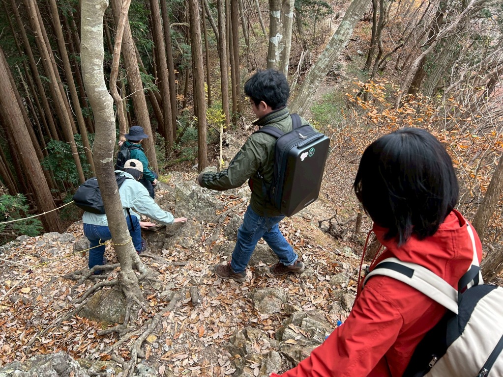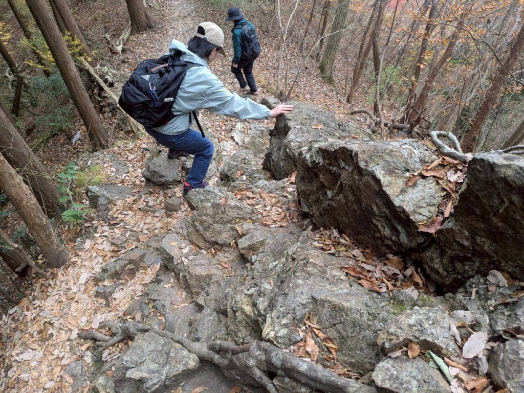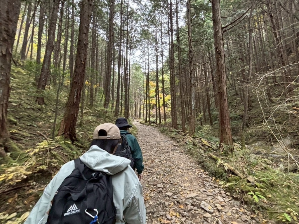 落ち葉で地面が滑りやすく、一歩一歩トレッキングを意識しながら下山しました!