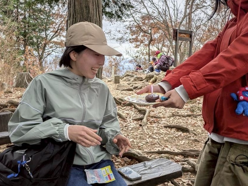 登山ルートは森の中の道が続いており少し疲れていましたが、到着すると関東平野の景色が広がっており気分も明るくなりました!