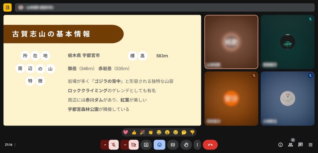 | 活動場所 | 事前学習:GoogleMeet (オンライン) 当 日:古賀志山 (栃木県宇都宮市古賀志町) |