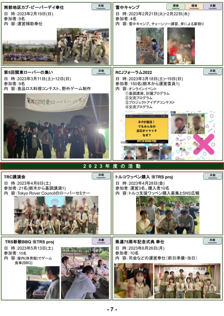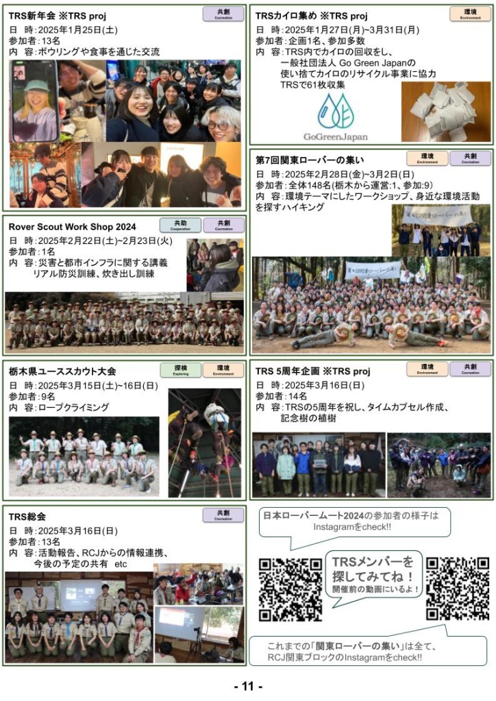 RS年代の活動報告や意見交換を通じて、今後は奉仕や、TRSメンバーのみでの活動だけでなく、年代・部門を超えて同じスカウト目線での活動をしてみたいと感じました。