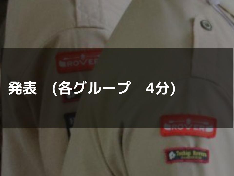 発表用資料を通じて、ローバー活動への理解を深めていただけたものと思います。また、グループワークでは多くのご意見をいただき、ファシリテーターの報告からも、活発な意見交換が行われたことがうかがえました。