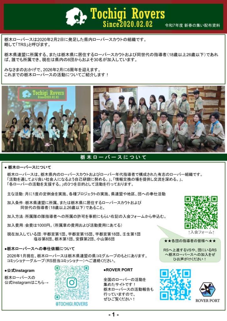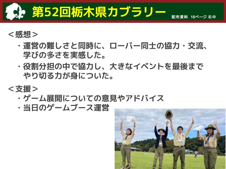 今回の研修で得られた気づきを糧に、栃木県内のローバースカウト活動が今後さらに力強く発展していくことを心から願っています。