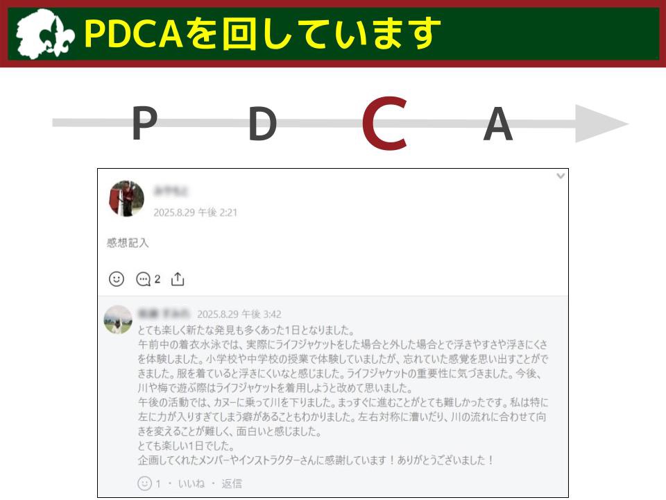 TRS・ローバーの活動の楽しさに加えて、「楽しいだけじゃない!」というところを伝えられたのかなと思います。