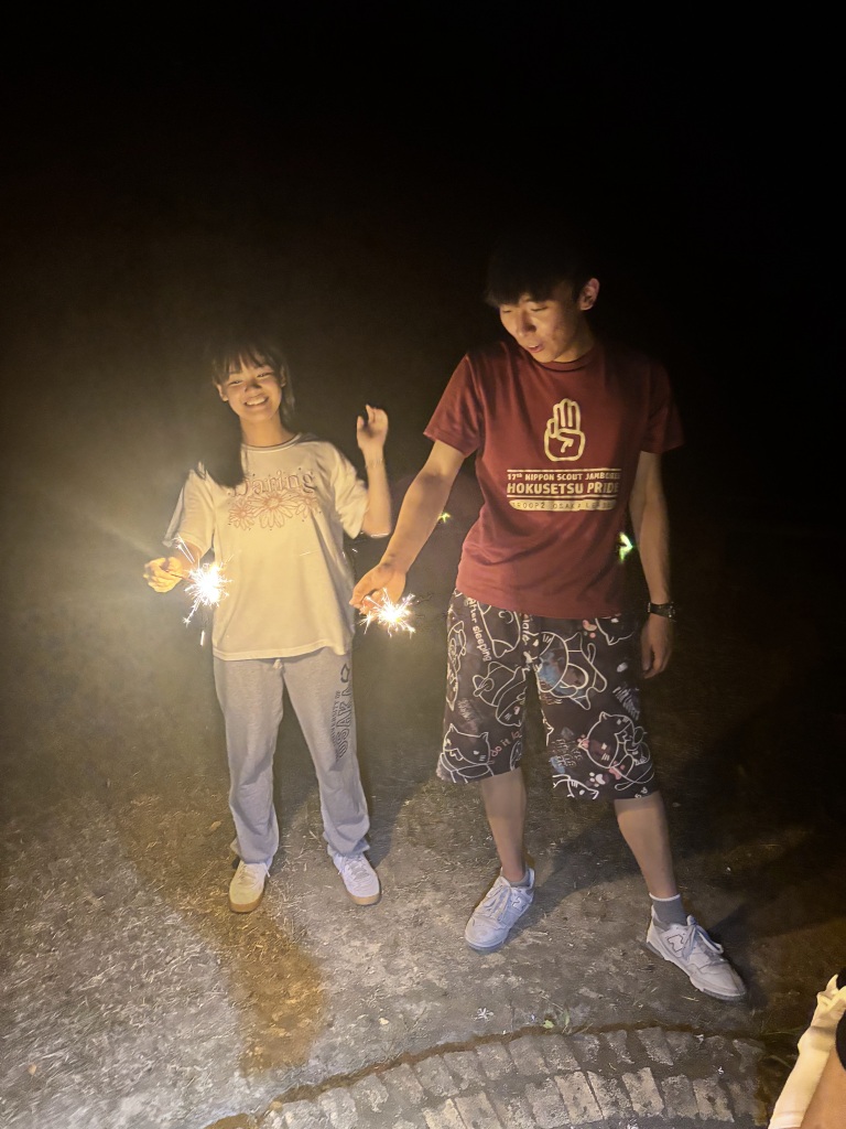 夏といえば花火!ということで今回の夜プログラムは花火でした!一通り楽しんだ後は線香花火選手権が即興で開催されました。