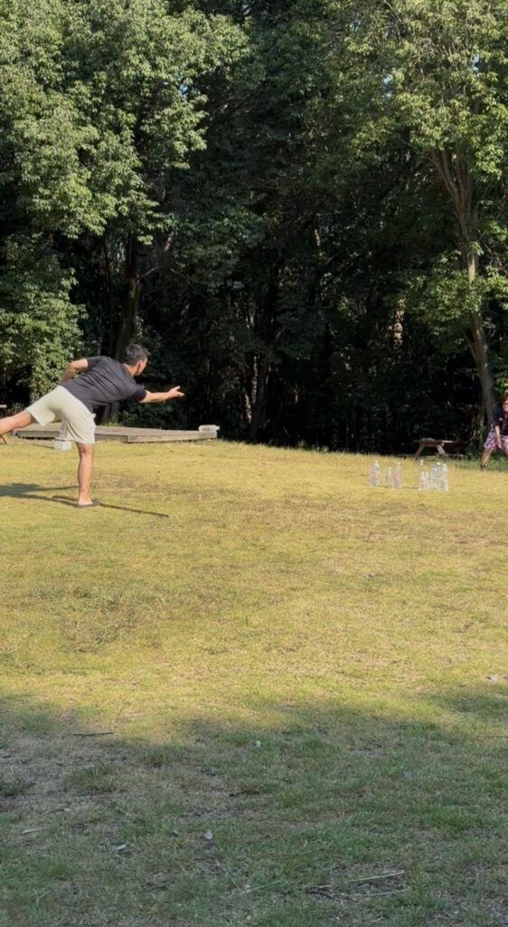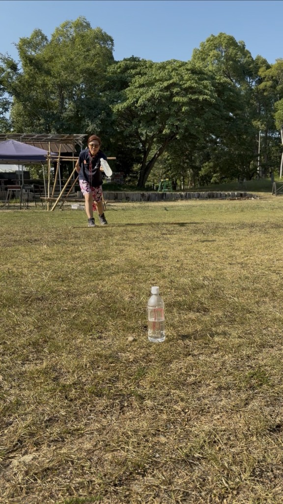 1日目のモルックが好評だったので、モーニングゲームとして班対抗もルックを実施しました。やってみると意外と難しく白熱した勝負が展開されました。おかげで朝から元気いっぱいでした!