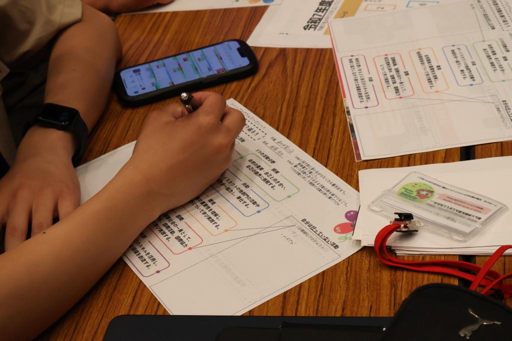 また、今回立てた活動目標を忘れないようにするため、スマホケースに入れられるサイズの紙に目標を記入しました。早速スマホケースに入れている人もいました!