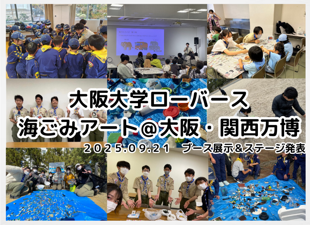 大阪大学ローバースの「海ごみアート教育プロジェクト」はまだまだ続いていきます!ぜひローバースカウトの皆さんも一緒に活動しませんか?自団のビーバースカウト・カブスカウトに対して我々とともにワークショップを運営するという形でも、ローバースカウトの皆さんが海ごみアート教育プロジェクトのワークショップを体験していただくという形でも大歓迎です!