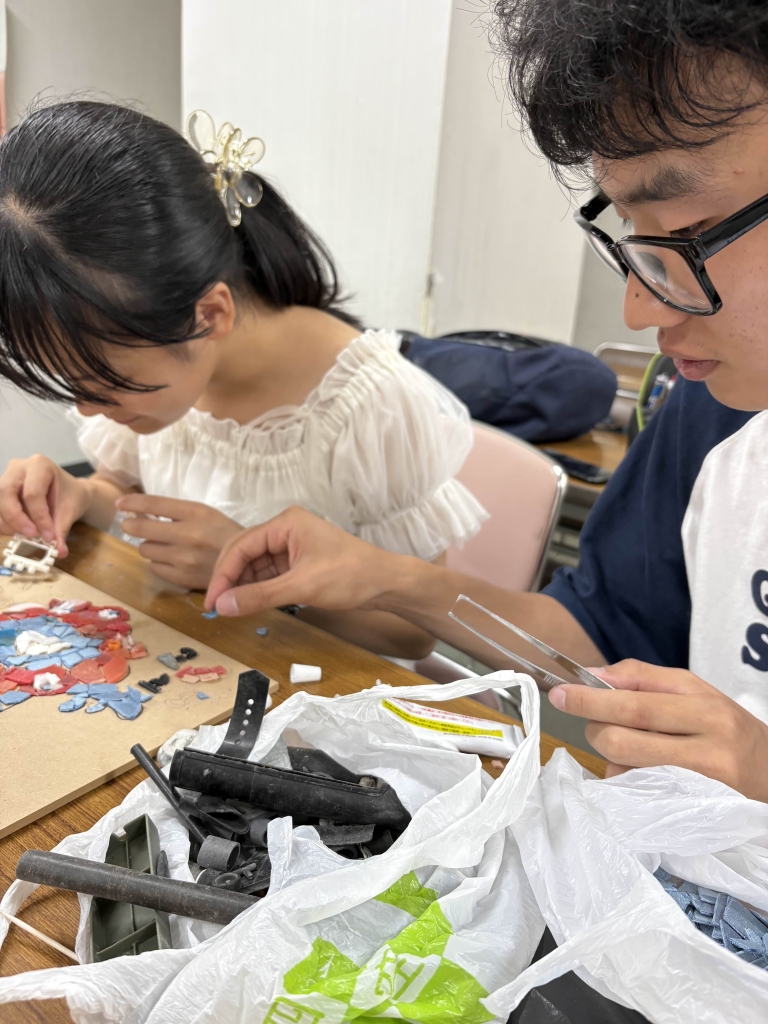 「海ごみを拾う」ワークショップでは、海岸に流れ着いた海ごみを回収・洗浄・乾燥します。「海ごみをアートにする」ワークショップでは、拾った海ごみを用いて、海ごみと紙粘土や写真立てを組み合わせ、自分なりの作品を作ってもらっています。同じ団体に対して2日間活動日程を企画して「海ごみを拾う」ワークショップと「海ごみをアートにする」ワークショップを開催したこともありますし、「海ごみをアートにする」フェーズだけを体験してもらったこともあります。活動開始から今までの約3年間で、約11回のワークショップを開催し、276人程度の子どもたちが参加してくれました。また、約10キロのごみをアート作品に昇華することができました。
